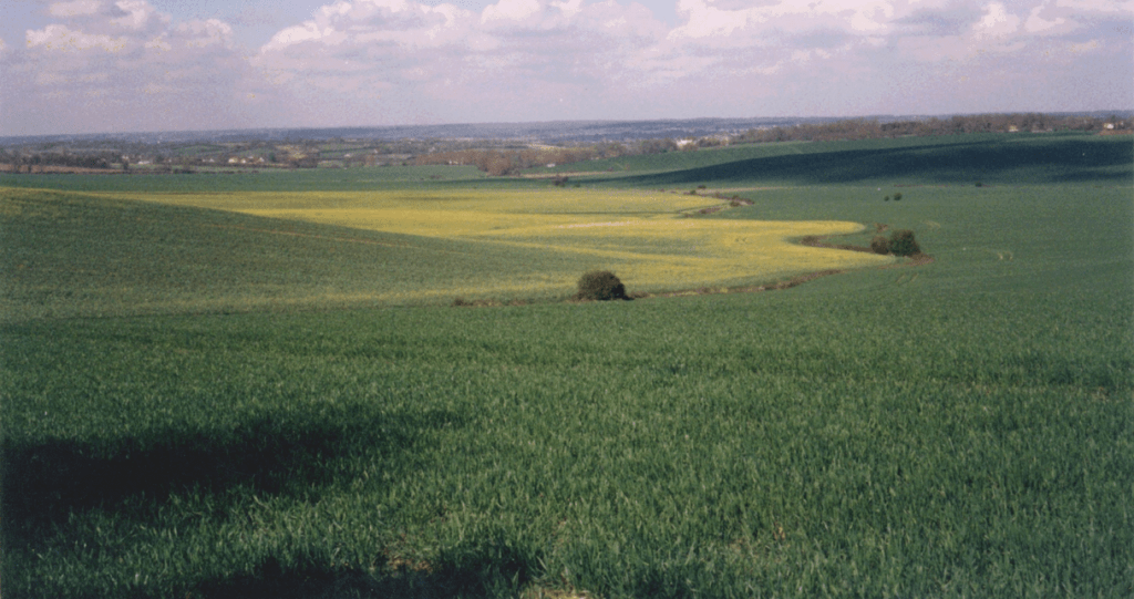 This photo below shows the lie of the land. It was taken from the track from the Duck Pond to Lodge Farm. In the distance, the buildings at the Duck Pond can be seen top right. Nazeing Park Cottage, Back Lane is the white dot in the centre. The houses in Bumbles Green Lane can be seen on the left-hand side. In the foreground, a shallow valley of agricultural land, was occupied by the dummy airfield during WW2. From the air the slope would not have been perceived.