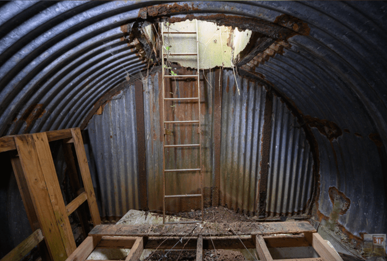 The southern night shelter is similar in layout to the northern bunker, and features the operations room and engine room in a similar layout accessed by an entrance corridor. The main differences with this bunker is that it is fully buried underground and made from a relatively thin corrugated iron tube, as well as being slightly smaller. Perhaps this was an earlier less-sturdy bunker, with the northern shelter being added later into the war to supersede it, although the exact reason for there being two shelters of similar design and function is not understood.