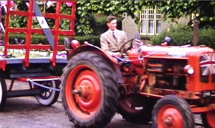 John Graham driving his tractor in the 1953 Coronation Carnival, he was always ready to help out when transport was needed for village events. You can view these amateur cine films on our You Tube channel. https://www.youtube.com/watch?v=q3SnTxzE2k0