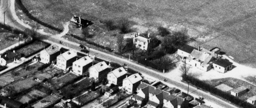 This enlargement (above) shows Tatsford House, and the small club house at the entrance, which Jacky Cooper (author of this blog) remembers as it hosted the children’s Christmas parties given by the RAF Association before the site closed. Opposite the entrance, on the south side of the road is the row of terraced cottages called Tatsford Villas.