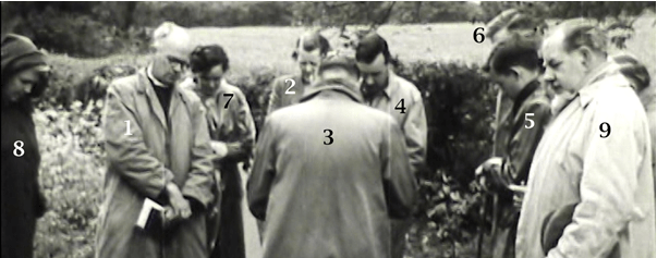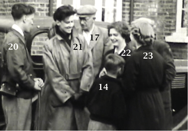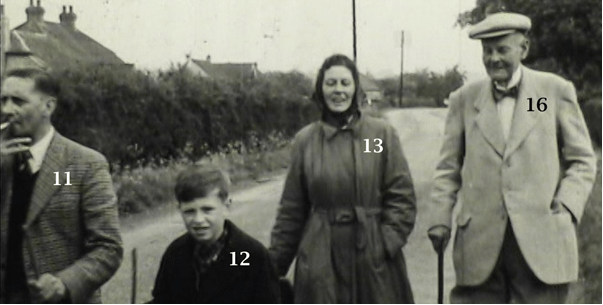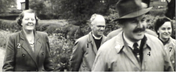 1.Rev. Harold Hawkins 2. Mrs Hawkins, vicar’s wife 5. Michael Hills, son of the headmaster 8. Flossie Welch, mother of Mick