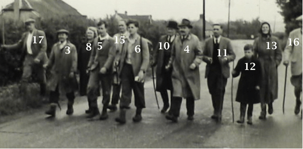 Jacky has numbered the people in the photos, and of course, because they have come from a film they’re not all very clear. If you were a resident of Nazeing in the 1950s and recognise any of the names, or disagree with the names we’ve allotted, please feel free to email.