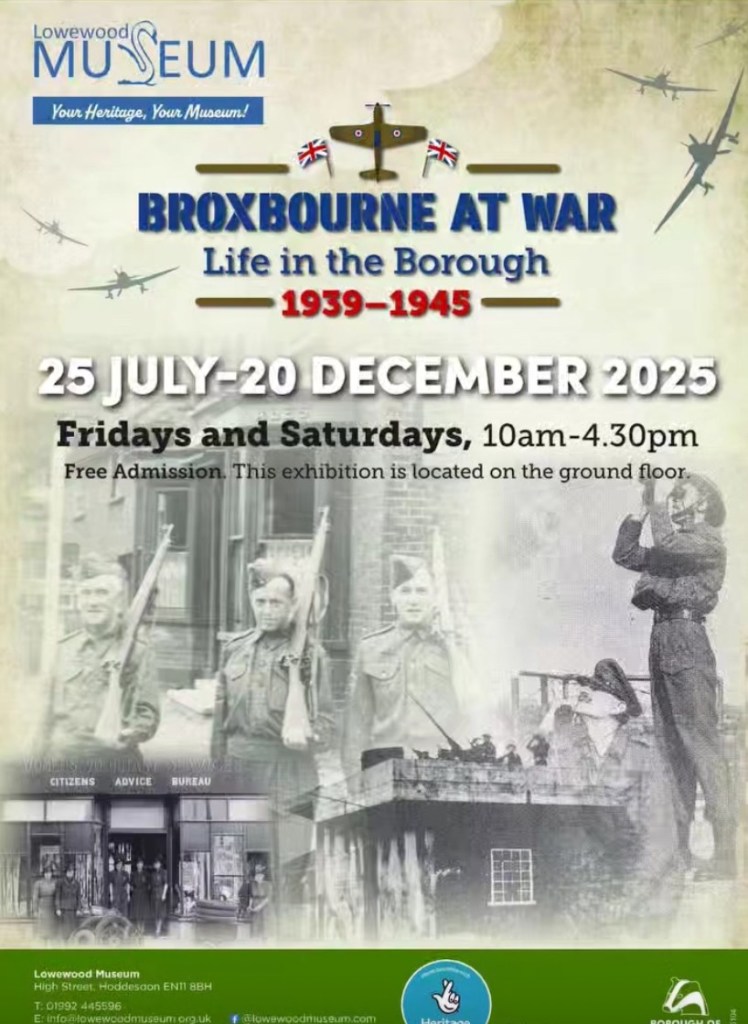 Lowewood Museum also have an exhibition on WW2. ‘Broxbourne at War, Life in the Borough 1939-1945’ opened quite recently and runs until nearly the end of the year. It focuses on how the war affected the residents of the Borough of Broxbourne. It was difficult to condense the vast amount of information, artifacts and photos which the museum holds into the exhibition space available.